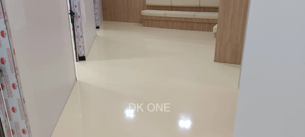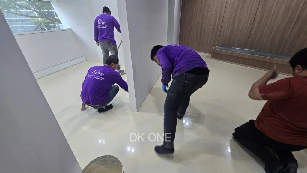 งานเคลือบพื้น Epoxy Self Leveling ความหนา 3 มม. พื้นที่ 80 ตร.ม. หน้างาน ม.กรุงเทพ